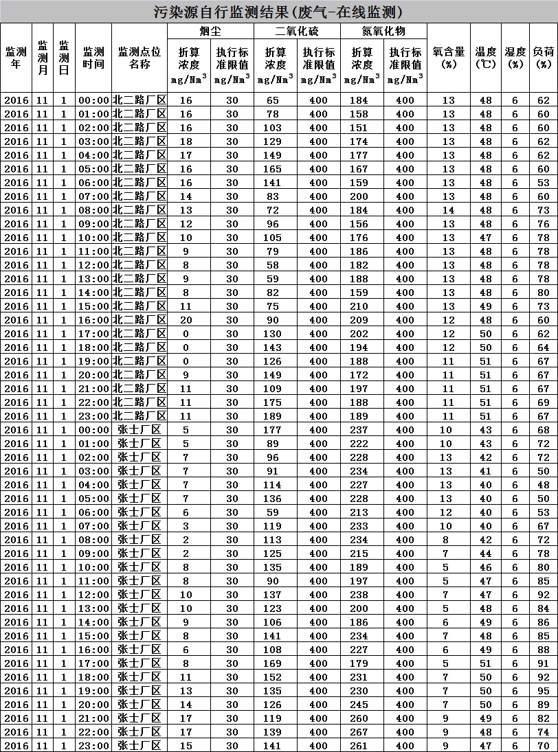 开云在线开户环境监测数据-2016.11.01