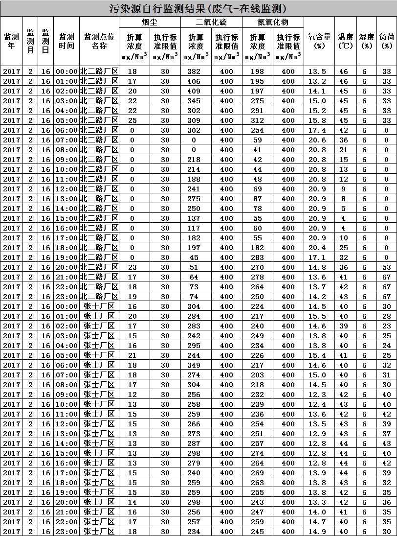 开云在线开户环境监测数据-2017.2.16